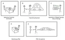 Storyboards can be used to illustrate steps in a process (see figure at right), providing an effective tool for eliciting requirements and communicating with project stakeholders. They may closely mimic an actual or planned activity, helping to focus participants in a requirements gathering meeting on the specific tasks discussed.