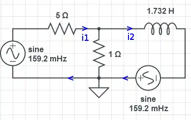 The magnitudes match. The voltage through the source peaks before the current because the first source sees the inductor.
