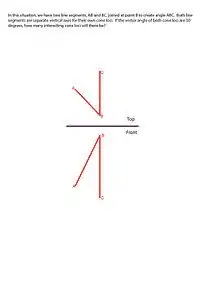 If the axes of the cones are not segments, but infinitely long lines, it is necessary to test if there are more two solutions. The rotating line that creates the conic surface can point in different directions from the vertex, creating a possibility of two cones. Because of this, there can be a maximum of four loci intersections for four cones.