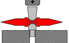 - cross-peen hammer (C) -- this style is most commonly associated with the blacksmith's trade. It has a fairly large diameter face, opposite the face is the peen which will look like a narrow face running perpendicular to the axis of the hammer handle. The face and peen are, typically, hardened. The straight-peen (B) and diagonal-peen variants are less common, but equally suitable for our purposes.