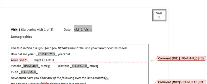 - Example Word CRF with merge fields and comments
