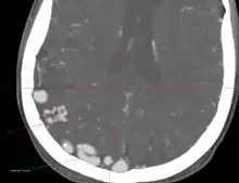 - Endovascular neurosurgery -- Involves the obliteration of vessels with glues or particles delivered via arterial catheter. Its main use is “neoadjuvantly” prior to crainiotomy to decrease intraoperative bleeding. It can also be used prior to SRS to decrease the size of an AVM. Embolization can be curative for lesions <1cm that are fed by a SINGLE artery. The main risk involves occluding a vessel that also supplies normal brain. The pathologic vessels usually recanalize over time, so this is rarely used by itself.