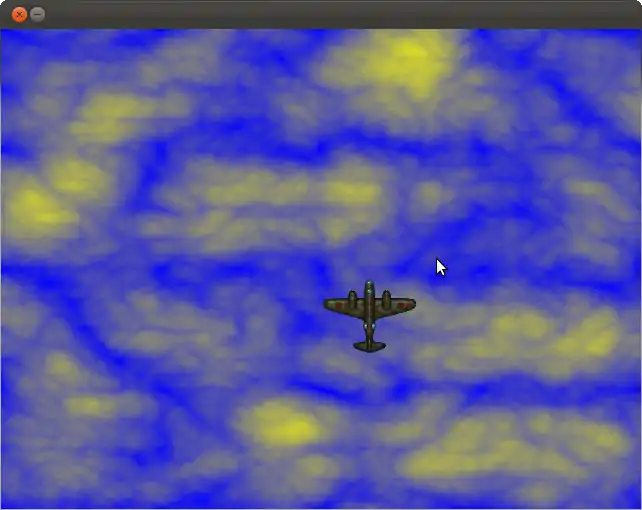 Note the order in which the background and the plane bitmap is blitted. This order allows the plane to be displayed on top of the cloud bitmap we showed earlier.