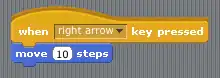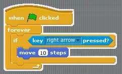 However, a better script for the arrow keys would be to use "change x by 10" for the right arrow, "change y by -10" for the left arrow, etc.