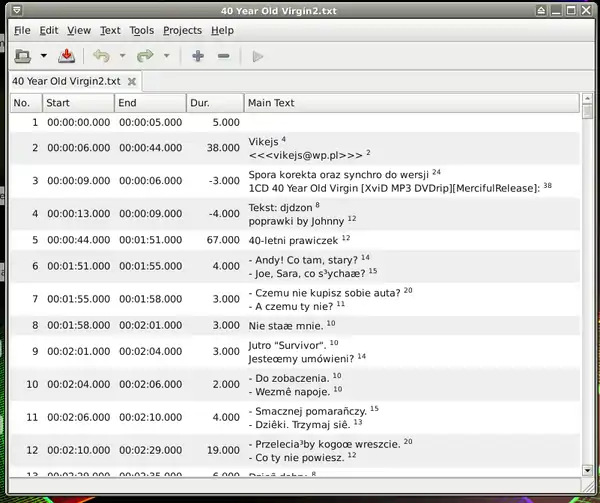 - If you watch movies with subtitles and you'd like to edit subtitle file just use Gaupol.