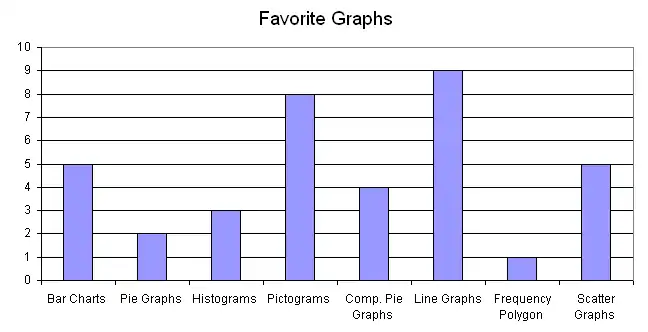 The Bar Chart (or Bar Graph) is one of the most common ways of displaying catagorical/qualitative data. Bar Graphs consist of 2 variables, one response (sometimes called "dependent") and one predictor (sometimes called "independent"), arranged on the horizontal and vertical axis of a graph. The relationship of the predictor and response variables is shown by a mark of some sort (usually a rectangular box) from one variable's value to the other's.