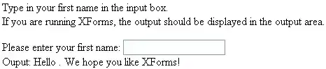 As the user types, this line takes the input that the user types in and copies it to the instance variable "PersonGivenName". Each time you type a character this program updates the output and using the XPath concat() function to wrap the string "Hello " in front of the name and the string ". We hope you like XForms!" after it.