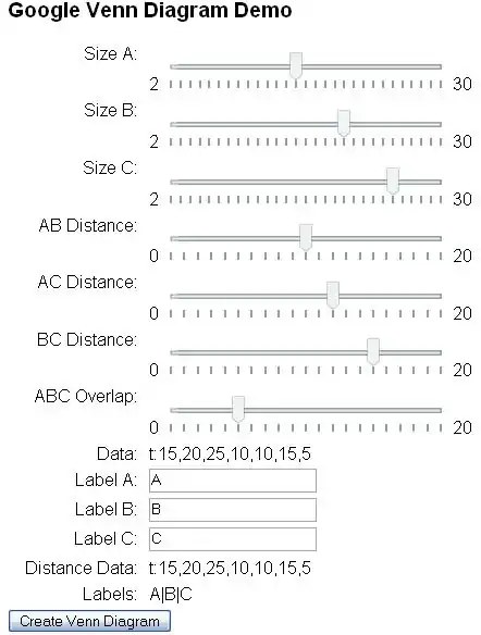 Use XForms range controls to change values in a form. Use the bind to concatenate input parameters. Use the incremental attribute to allow the user to see the changes as the range controls change. Sending a submit will alter the Venn Diagram REST parameters.