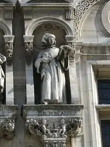 Étienne Boileau (French pronunciation: [etjɛn bwalo]) (1200 or 1210 – April 1270) was one of the first known provosts of Paris. In 1261, he was named provost (1261–1271), by King Louis IX. He authored the Goldsmiths' Statute of 1260, a collection of the statutes of the Parisian trade guilds, including the standards for gold and silver alloys. Boileau brought together the regulations on the police, industry and the trades of Paris in this "Book of the Trades." This work in prose is a faithful mirror reflecting the smallest details of the industrial and commercial life of Paris in the 13th century. The work is the oldest document on the legislation of the communities of craftsmen in France, written in 1268. Jean de Joinville draws a very flattering portrait of Boileau in his History of St. Louis. According to Joinville, Boileau was a just man without undue consideration for the wealth or status of the accused, and thus disencumbered the city of all its robbers and criminals.