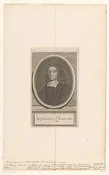Étienne Chauvin (18 April 1640  6 April 1725),[1] French Protestant divine, was born in Nîmes. At the revocation of the Edict of Nantes he retired to Rotterdam where he was for some years preacher at the Walloon church. In 1695 the elector of Brandenburg appointed him pastor and professor of philosophy, and later inspector of the French college at Berlin, where he enjoyed considerable reputation as a representative of Cartesianism and as a student of physics.[2]