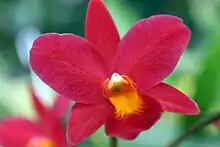 × Hawkinsara, abbreviated Hknsa. in the horticultural trade,[1] is an intergeneric hybrid of orchids, with parent genera Broughtonia, Cattleya, Laelia and Sophronitis.
