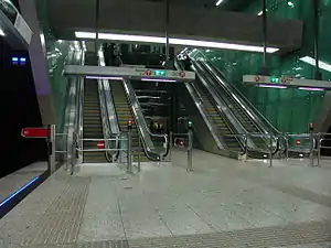 Újbuda-központ (lit. "Újbuda-Centrum") is a station on Line 4 of the Budapest Metro. The station is an important traffic junction. Tramways leading to southern Buda cross road traffic from Petőfi Bridge here. It is also the southern terminus of Tramline 4. The station was opened on 28 March 2014 as part of the inaugural section of the line, from Keleti pályaudvar to Kelenföld vasútállomás.[1]