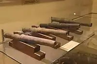 Chinese-inspired Vietnamese handguns at the History Museum of Vietnam in Hanoi, including one with priming pan lid dated from late 15th century.[18]