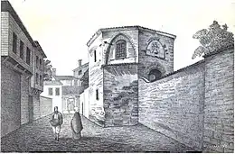 The mosque viewed from south in a drawing of 1877, from A.G. Paspates' Byzantine topographical studies