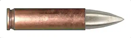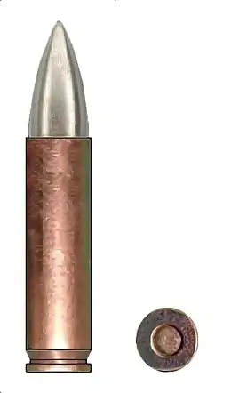 To meet this need, Frank F. Burton of Winchester, developed the "Burton Light Machine Rifle", a selective fire blowback rifle, with selection of rate of fire to be used in observation and surveillance planes, the first practical version of which was ready in 1917.[4] [5] [6] For this rifle, he adapted the .351 WSL cartridge into a rimless cartridge, firing an incendiary Spitzer bullet, resulting in the .345 Winchester Self-Loading.[1][7]