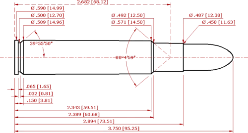 Schematic of the .450 Dakota. All dimensions in inches [millimeters].