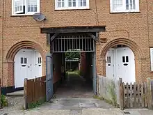 The carriage arch between numbers 163/165 and 169/171 leads through to the two storey laundry building at the back.[4]