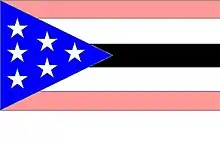 Small  vexillological symbol or pictogram in black and white showing the different uses of the flag Flag of the "Arkansas Army"