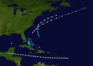 - ↑ Chronological List of All Hurricanes: 1851 – 2012. Atlantic Oceanographic and Meteorological Laboratory (Report). Miami, Florida: National Oceanic and Atmospheric Administration. 2013. Retrieved July 13, 2014.