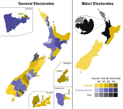 The Māori vote, for the remaining four seats, was held on 27 November. Maori electorates did not have electoral rolls so their voting figures and percentages are not included above.