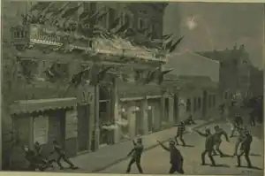 Meeting at the Unión Cívica Club: in conflict with the police (Melton Prior, The Illustrated London News, 1892).
