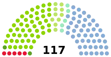 All 117 seats in the Storting 59 seats needed for a majority | |||||||||||||||||||||||||||||||||||||||||||||||||||||||||||||||||||||
