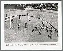 ![]() Dartmouth's victory over Harvard; a pass from Oberlander to Tully | ||
