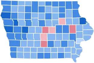Iowa was won by Governor Franklin D. Roosevelt (DNew York), running with Speaker John Nance Garner, with 57.69% of the popular vote, against incumbent President Herbert Hoover (RCalifornia), running with Vice President Charles Curtis, with 39.98% of the popular vote.[3][4] This is the only occasion since the Civil War when Cass County and Page County have voted for a Democratic Presidential candidate.[5][6]