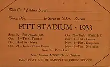 - ↑ "Issue Spring Grid Practice Call". The Pitt News. Vol. 1, no. 39. March 7, 1933. p. 3. Retrieved January 10, 2022.