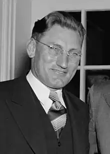 Roosevelt, acutely aware of strong isolationist and non-interventionist sentiment, promised there would be no involvement in foreign wars if he were re-elected.[4] Willkie, who had not previously run for public office, conducted an energetic campaign, managing to revive Republican strength in areas of the Midwest and Northeast. He criticized perceived incompetence and waste in the New Deal, warned of the dangers of breaking the two-term tradition, and accused Roosevelt of secretly planning to take the country into World War II. However, Willkie's association with big business damaged his cause, as many working class voters blamed corporations and business leaders for the Great Depression. Roosevelt led in all pre-election polls and won a comfortable victory; his margins, though still significant, were less decisive than they had been in 1932 and 1936.