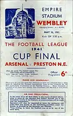 The replay took place three weeks later, on 31 May 1941, at Ewood Park.[2] Preston took the lead through Bobby Beattie, but Arsenal equalised late in the game courtesy of an own goal by Frank Gallimore.[3] Within thirty seconds, Beattie had scored again for Preston, to secure the victory 2–1.[4]