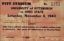 - ↑ Hughes, Carl (October 9, 1943). "Old Rivals Clash Before 15,000 Fans". The Pittsburgh Press. p. 8. Retrieved May 26, 2023 – via Newspapers.com.