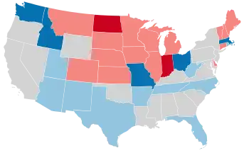 - ↑ There was no net change in the regularly-scheduled elections, but Republicans picked up one seat in the special elections.
