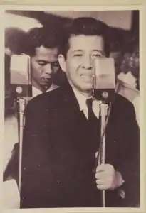 On the morning of 9 November, General Choonhavan, the spokesman for the junta,[10] read a declaration to the press and broadcast by radio outlining the cause of the coup. He claimed the government's incompetence caused the people to suffer from high prices and the general lack of food and goods. Thus, they reckoned that the government was unable to solve the problem and must be removed by force.[10] During the speech, Choonhavan cried profusely, and was dubbed sarcastically by the press as the "hero of tears" (Thai: วีรบุรุษเจ้าน้ำตา), or the "crying patriot" (Thai: บุรุษผู้รักชาติจนน้ำตาไหล).