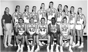 The 1962-63 season saw the Fighting Illini finish with 20-6 overall, 11-3 in the conference. Senior Dave Downey led the team in scoring, as he had the previous two seasons, and he moved into first on the all-time scoring list. Downey also set the school record for points in a game, which still stands, with 53 in a road loss to Indiana on February 16, 1963. Illinois was a game back of first place in the league standings with only two games remaining when the Assembly Hall opened its doors on March 4, 1963. Illinois’ first game at the Hall was an exciting 79-73 victory over Northwestern before 16,137 fans to stay within a game of first-place Ohio State. After Illinois edged Iowa, 73-69, in the last game of the season, the Fighting Illini would need an overtime loss two hours later by the Buckeyes at Indiana to share the title. During the season the Illini would win the Eastern College Athletic Conference Holiday Festival and make the Elite Eight of the 1963 NCAA Men's Division I Basketball Tournament, losing to eventual champion Loyola (Chicago).