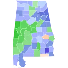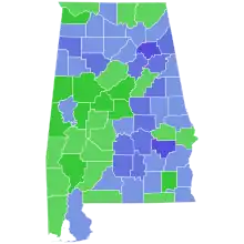 | Cullman | 11,134 | 67.60% | 5,225 | 31.72% | 111 | 0.67% | 5,909 | 35.88% | 16,470 |