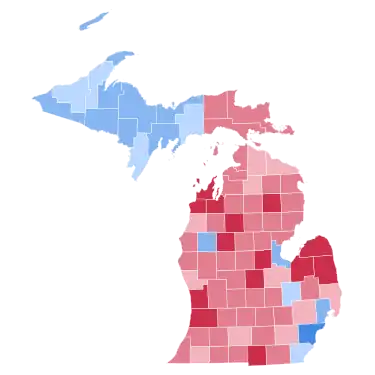 | Saginaw | 32,266 | 41.67% | 38,070 | 49.17% | 6,906 | 8.92% | 181 | 0.23% | -5,804 | -7.50% | 77,423 |