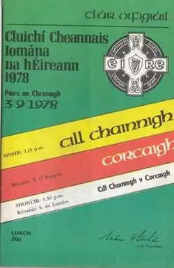The 1978 All-Ireland Senior Hurling Championship Final was the 91st All-Ireland Final and the culmination of the 1978 All-Ireland Senior Hurling Championship, an inter-county hurling tournament for the top teams in Ireland. The match was held at Croke Park, Dublin, on 3 September 1978, between Cork and Kilkenny. The Leinster champions lost to their Munster opponents on a score line of 1-15 to 2-8.