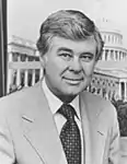 During his first term in the Senate, Melcher's relative conservatism for a Democrat prompted a primary challenger in Michael Bond, a housing contractor who campaigned on his opposition to nuclear war. Bond attacked Melcher for voting to increase spending on nuclear arms, and pledged to reduce military spending to $60 billion and to use the savings to reduce interest rates.[1] During the campaign, Bond came under fire from the state branches of the Veterans of Foreign Wars and the Disabled American Veterans for turning in his draft card in 1967 to protest the Vietnam War, who put out a statement, saying, "There is no place in the U.S. Senate for any draft dodger, draft card burner or draft protester of any kind."[2]