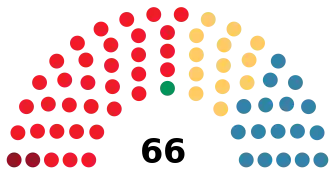The PSOE had initially obtained 34 seats, the absolute majority, but a new count in Zaragoza following a number of claims resulted in the PSOE's 17th seat in the constituency being awarded to the People's Coalition by few votes.[3][4] As a result of the election, PSOE candidate Santiago Marraco was elected by the Cortes as new president of the General Deputation of Aragon.[5][6] The election remains the only occasion to date in which a party has obtained 50% or more of seats on its own in an Aragonese regional election.