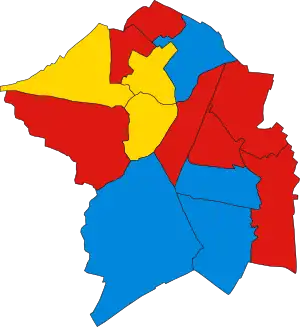 Last election 20 seats, 33.1% 14 seats, 34.0% 8 seats, 32.4%