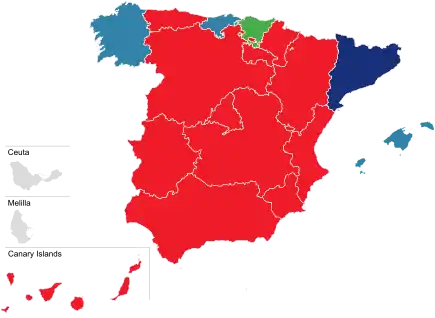 - ↑ "El PSOE domina 12 de las 17 comunidades autónomas". El País (in Spanish). 9 May 1983. Retrieved 11 December 2019.