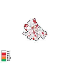 Christian Democracy was by far the largest party, while the Italian Communist Party came distantly second.