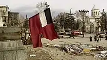 The lack of organization within governmental troops and the defection of a large amount of forces during the coup makes any attempt to estimate the size of troops loyal to Zviad Gamsakhurdia difficult.[lower-alpha 2] At the onset of the conflict, the National Guard, which includes merely a fraction of its 15,000 original soldiers following Tengiz Kitovani's secession, contributes to the majority of troops protecting the Parliament building, but the number of actual National Guard members participating in the conflict remains unknown, as a large part of the Guard remains in South Ossetia during the coup.[23] While some western sources claim between 1,000 and 2,000 combatants fight for Gamsakhurdia,[39] the latter estimates himself having 5,000 soldiers on his side.[40]