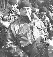 The participation of foreign mercenaries remains a controversial subject, denied by Gamsakhurdia supporters. However, during a 4 January press conference by the Military Council, the latter condemns the use of Chechen mercenaries sent by Ichkeria President and close Gamsakhurdia ally Jokhar Dudayev.[41] Jaba Ioseliani, leader of the Mkhedrioni militia, states then that "Jokhar Dudaiev's position is unacceptable and misplaced, but hope remains that this quid pro quo can be fixed.[41]" On 5 January, four Ukrainian mercenaries probably working as snipers for the government are detained by the opposition.[45]