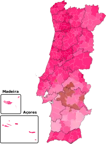 | Aveiro | 250,336 | 77.27% | 49,675 | 15.33% | 17,894 | 5.52% | 6,065 | 1.87% | 64.36% | |