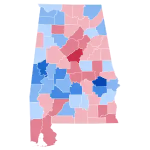 As of the 2020 presidential election, this is the last time a Democratic candidate won Lauderdale County, and the last time a Republican won Montgomery County.[3]