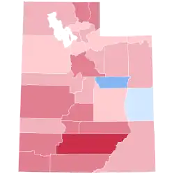- ↑ Because Perot finished ahead of Clinton in Utah as a whole, all margins given are Bush minus Perot unless stated in the total for the county in question.