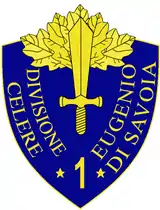 The 1st Cavalry Division "Eugenio di Savoia" (Italian: 1ª Divisione celere "Eugenio di Savoia") was a cavalry or "Celere" (Fast) division of the Royal Italian Army during World War II. The division was mobilized in 1940 and took part in the Invasion of Yugoslavia. The division was assigned to the XI Corps in Ljubljana and remained in Yugoslavia as occupation force on the Dalmatian coast. After the Armistice of Cassibile on 8 September 1943 the division was disbanded by the Germans.[1]