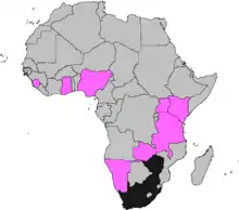 Two combined regional teams, East and Central Africa and West Africa, participated in the championship for the first and only time, respectively organised by the East and Central Africa Cricket Conference and the West Africa Cricket Council.[1] Players from Malawi, Tanzania, and Zambia were eligible for East and Central Africa, while players from The Gambia, Ghana, Nigeria, and Sierra Leone were eligible for West Africa.[2]